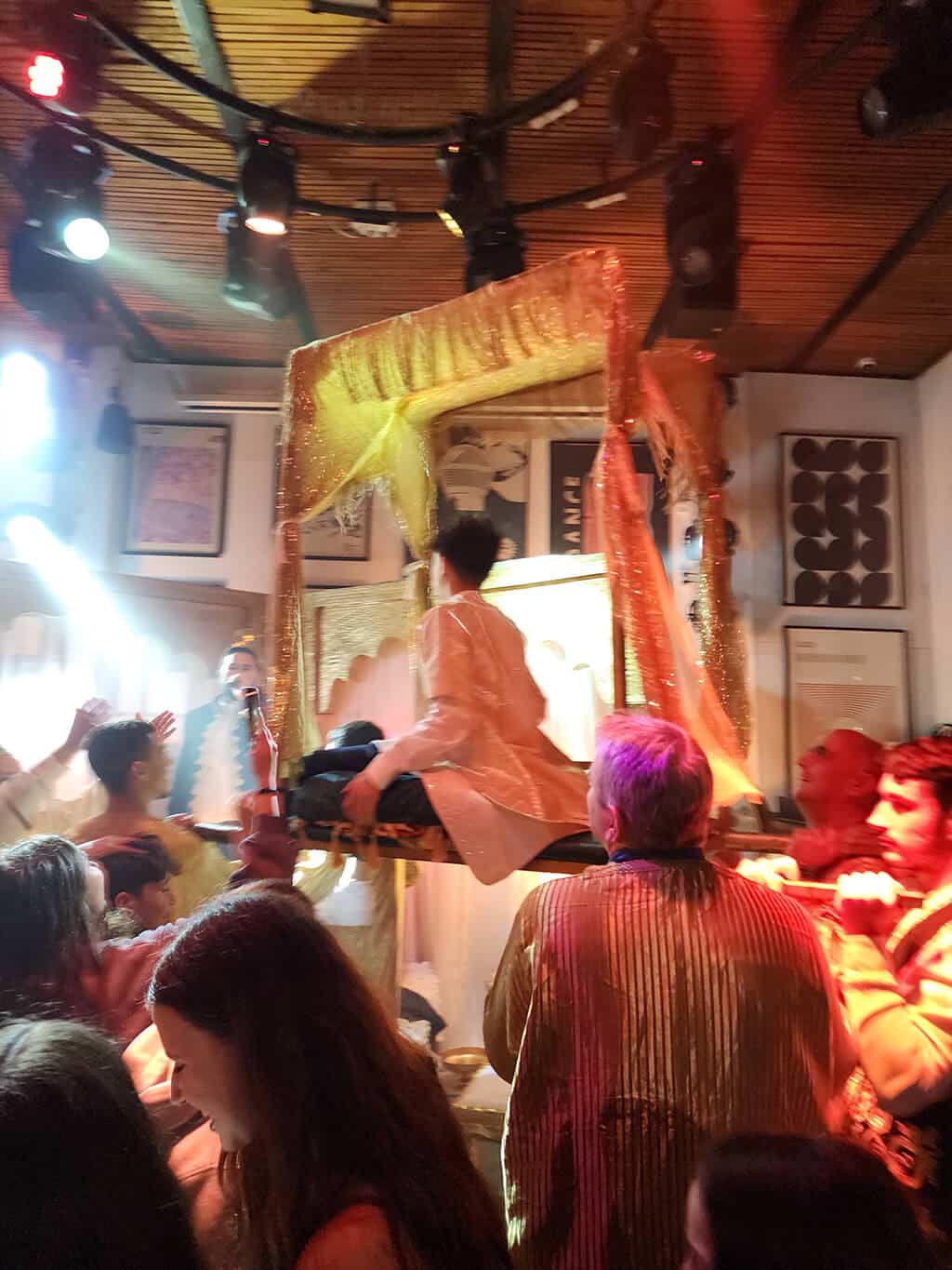 לווי על שטיח אדום עם נערות הרמון בשלל תלבושות.